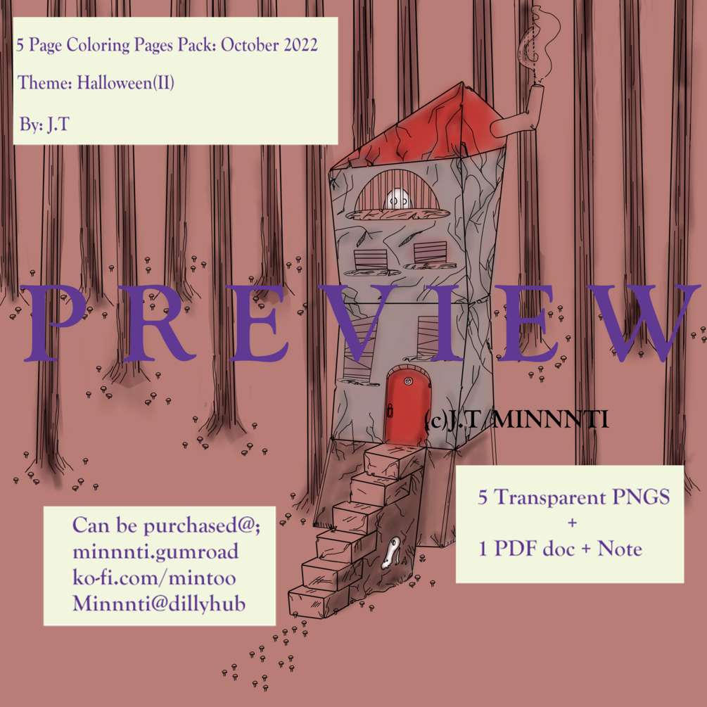This is my seventeenth coloring pages pack, made for October(2022). The theme is Halloween(II). Illustration pages contained in this pack are; cat witch, owl, pumpkin girl, spooky house and vampiress.