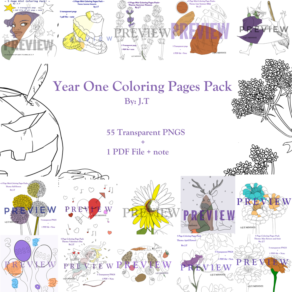 All pages, from previous months, come in both transparent PNG(for digital coloring) and in PDF form(for printing to color traditionally) all via zip file. Price is as shown or what you choose.